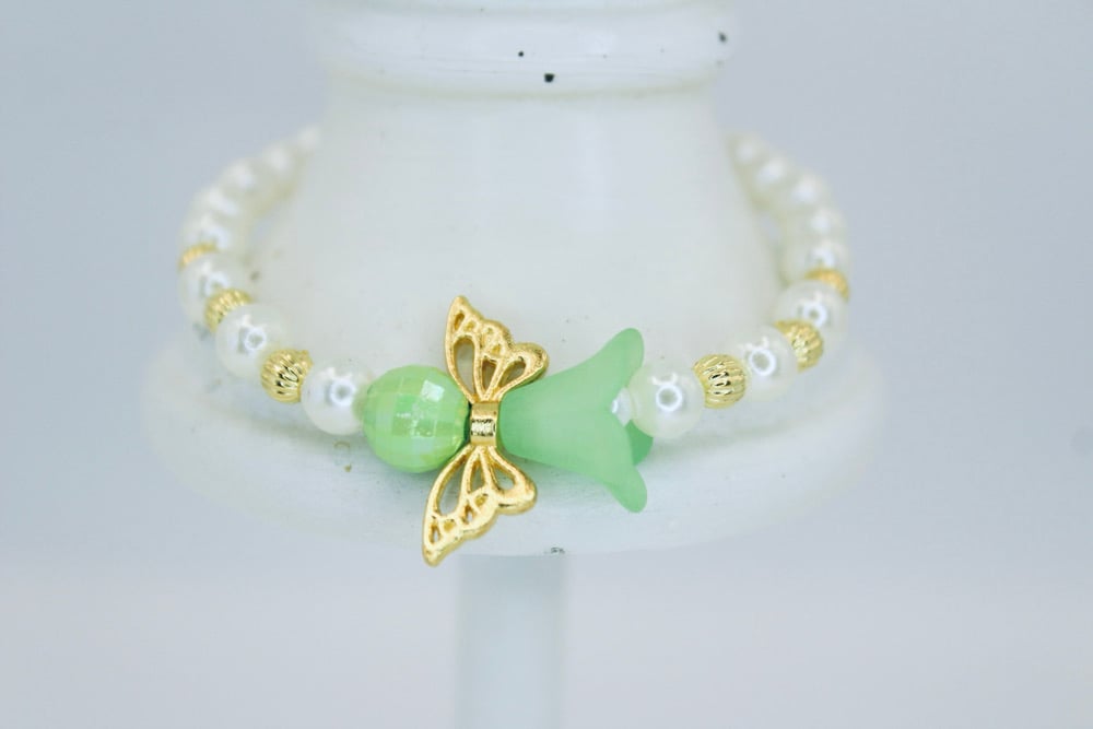 Colorful Angel Stretch Bracelets with Bell shaped Skirts & Metallic Wings.