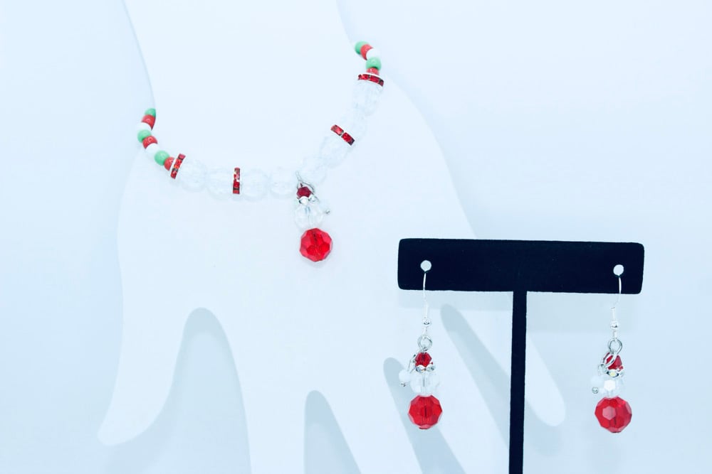 Jolly Santa Set includes 1 Stretch Bracelet with beaded Santa Charm & 1 pair Santa dangle Earrings. ❤️🎄
